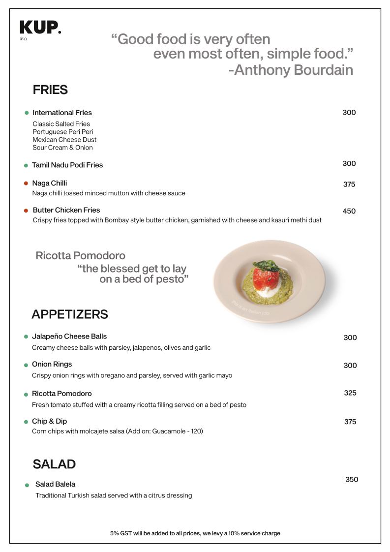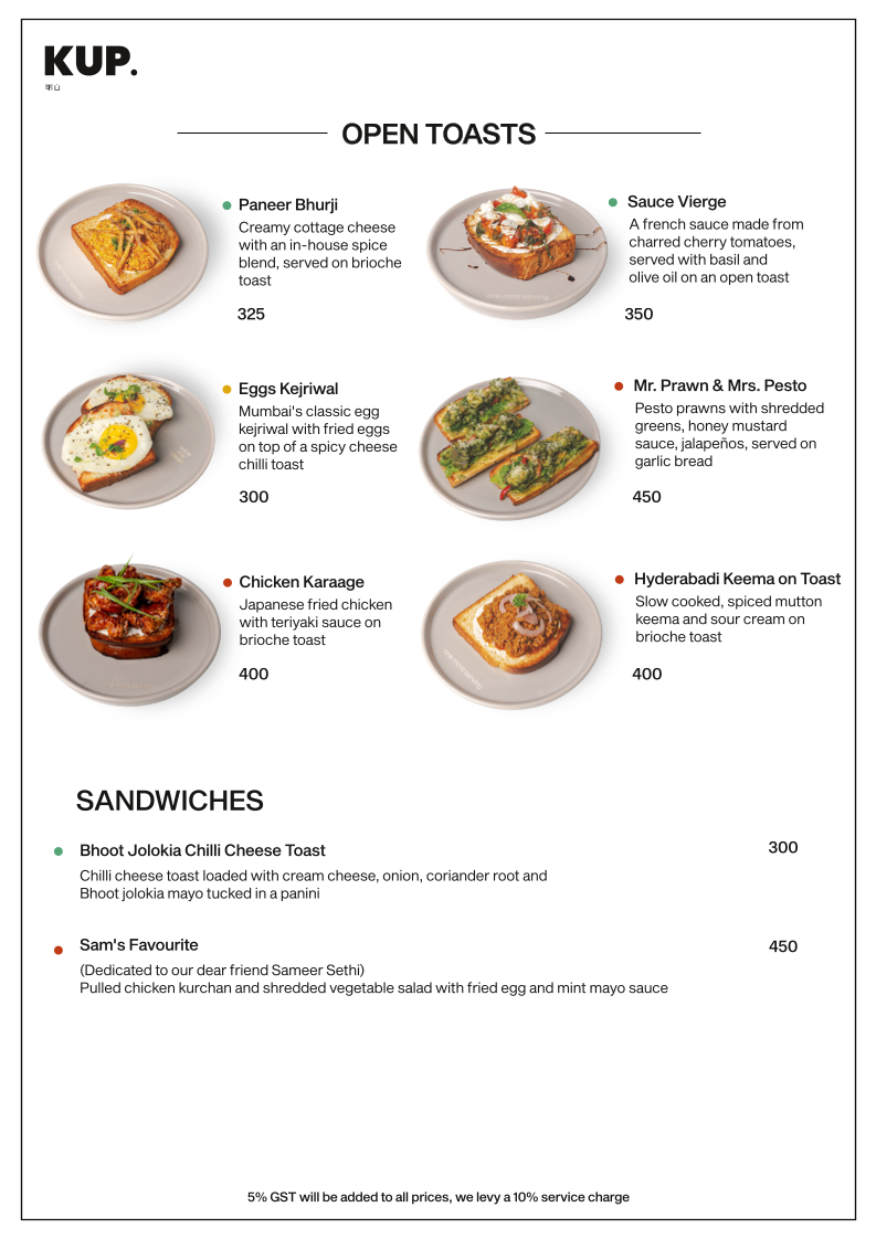 KUP Budan House - Alwarpet Menu